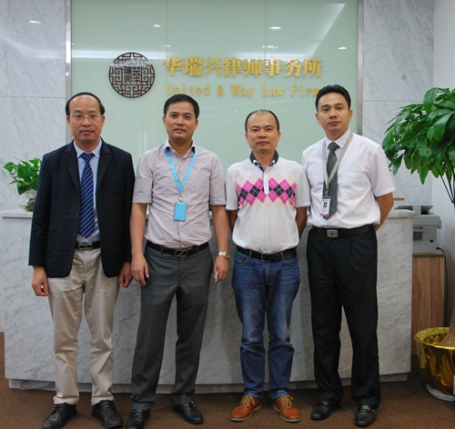 2015年8月26日,广东电白建设集团有限公司领导莅临华瑞兴律师事务所,华瑞兴律师事务所管委会主任魏济民律师与周光福律师一同接待了来宾们。