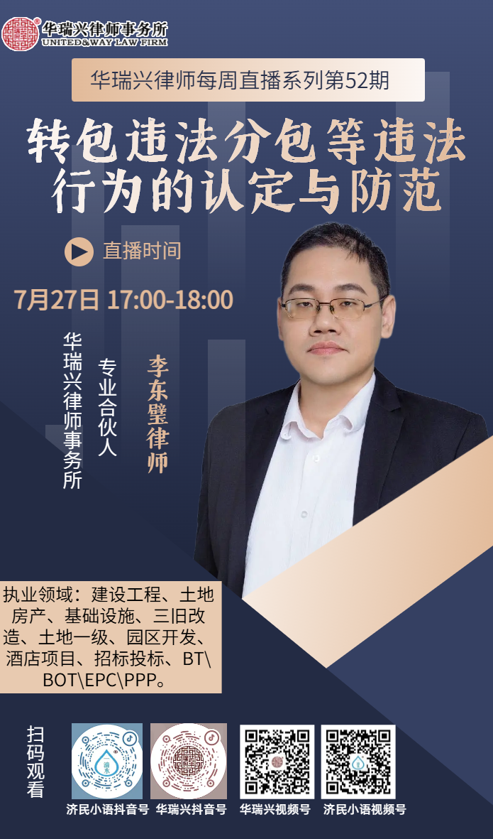 编辑/谢文涵 审核/ 陈熙 华瑞兴客户宣传部出品 专业合伙人 执业领域:建设工程、土地房产、基础设施、三旧改造、土地一级、园区开发、酒店项目、招标投标、BT\BOT\EPC\PPP。 【经办案例】 1、广州市东建实业有限公司房屋买卖合同纠纷系列诉讼案件(共65件) 2、广东中南建设有限公司与李万奇建设工程施工合同纠纷案件 3、广东建雅室内工程设计施工有限公司与广州康纳天花有限公司货物买卖合同诉讼案件 4、刘记房房屋买卖合同纠纷系列案件(共29件) 5、广州星湖泰富房地产有限公司房屋租赁合同纠纷系列案件(共6件) 6、中建四局第五建筑工程有限公司与广州市番禺区房地产联合开发总公司大石公司建设工程施工合同纠纷案件 7、广州市建筑集团有限公司与广东省农垦工商发展有限公司建设工程施工合同纠纷执行案件 8、广州地铁集团有限公司与广东华之源信息工程有限公司服务合同纠纷案件 lidongbi@gdhrx.com 18565035380