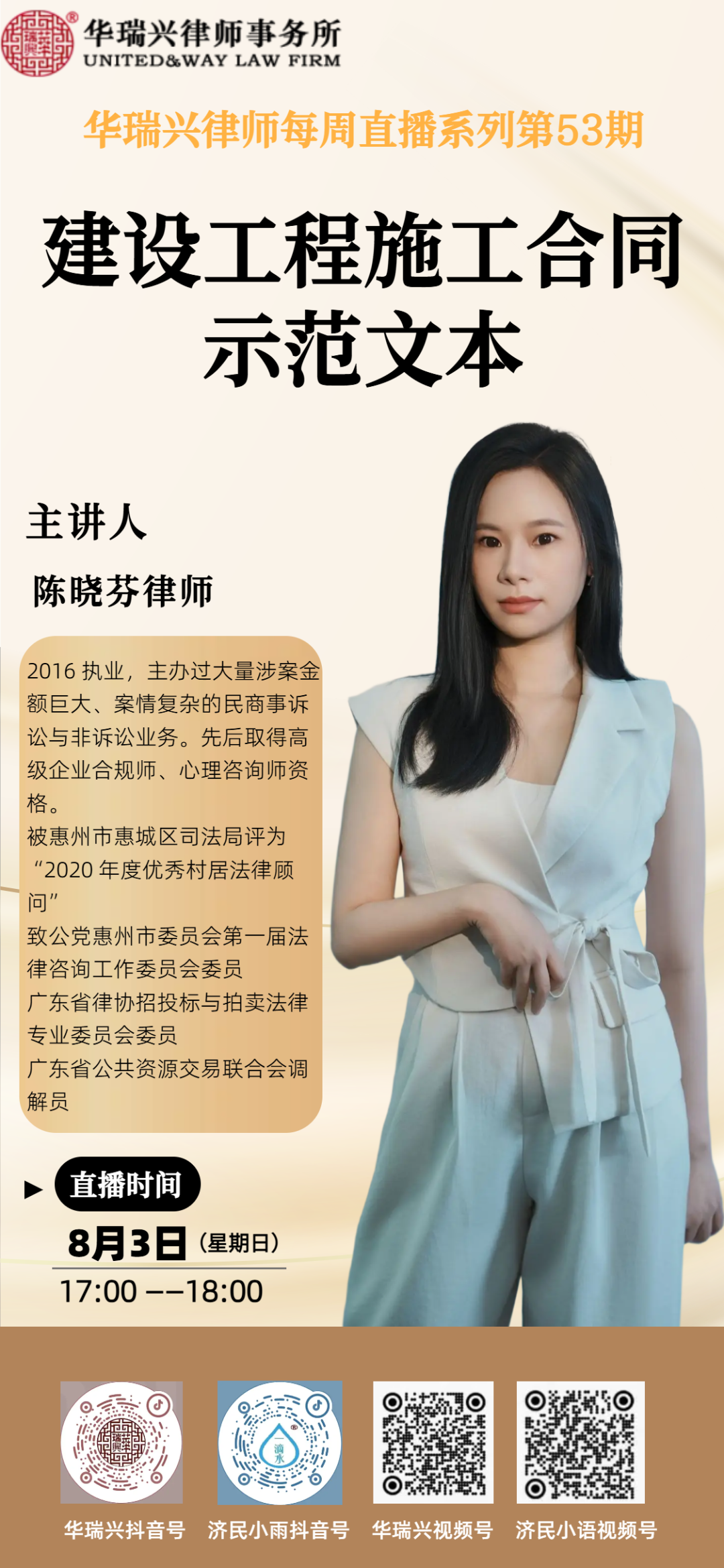 直播预告|华瑞兴律师每周直播系列第53期: 建设工程施工合同示范文本