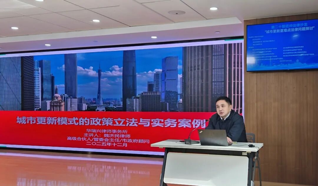 为深入探讨城市更新进程中的重难点法律问题,助力城市内涵式发展,2025年12月13日,由武汉市法学会、武汉仲裁委员会(武汉国际仲裁中心)、武汉市律师协会联合主办的第二十期武仲法律沙龙 “城市更新重难点法律问题探讨” 在武汉仲裁委员会顺利举办。华瑞兴律师事务所管委会主任魏济民律师作为武汉仲裁委员会仲裁员受邀作为主讲嘉宾出席活动,带来专业分享。