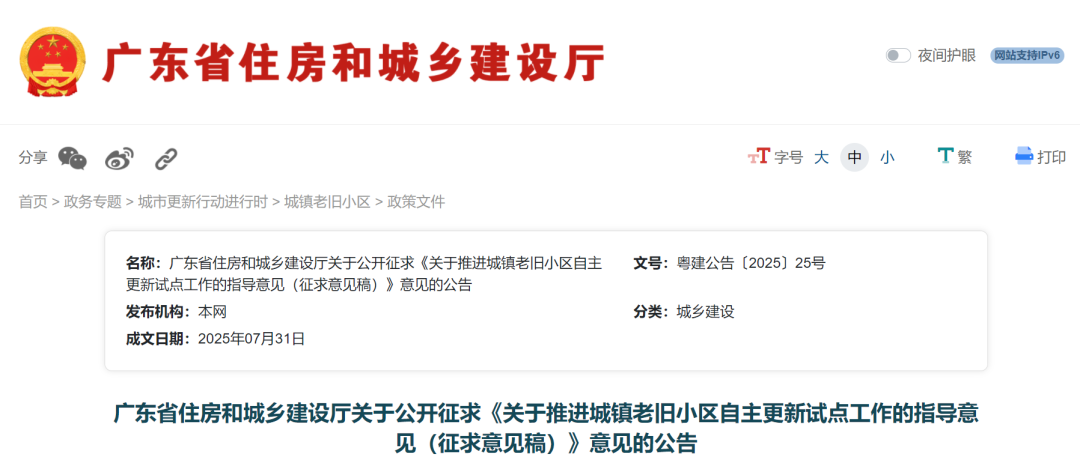 为鼓励老旧小区房屋产权所有人自主更新,进一步改善居民居住条件,提高居住环境质量,8月1日广东省住房和城乡建设厅发布了《关于推进城镇老旧小区自主更新试点工作的指导意见(征求意见稿)》。